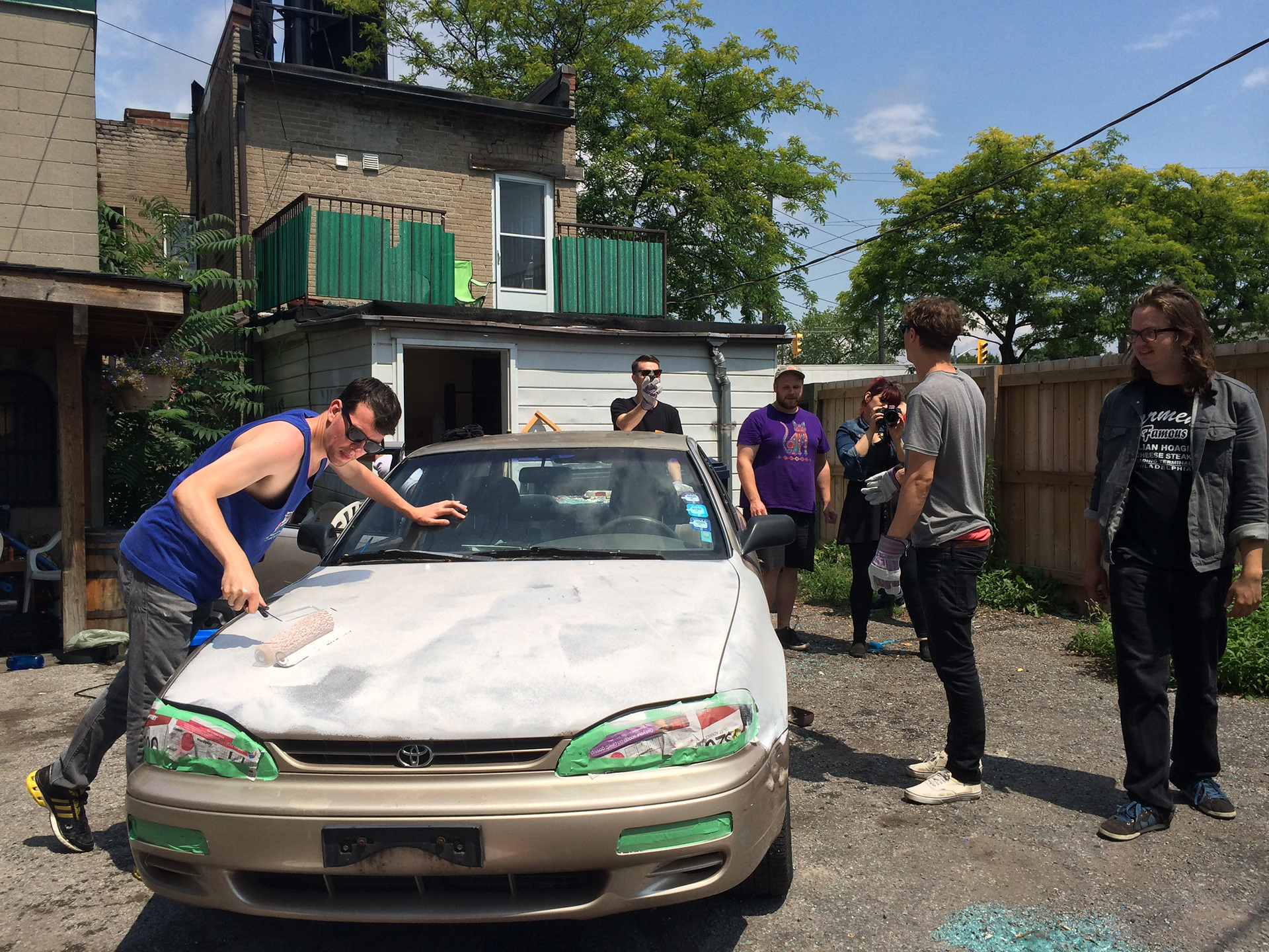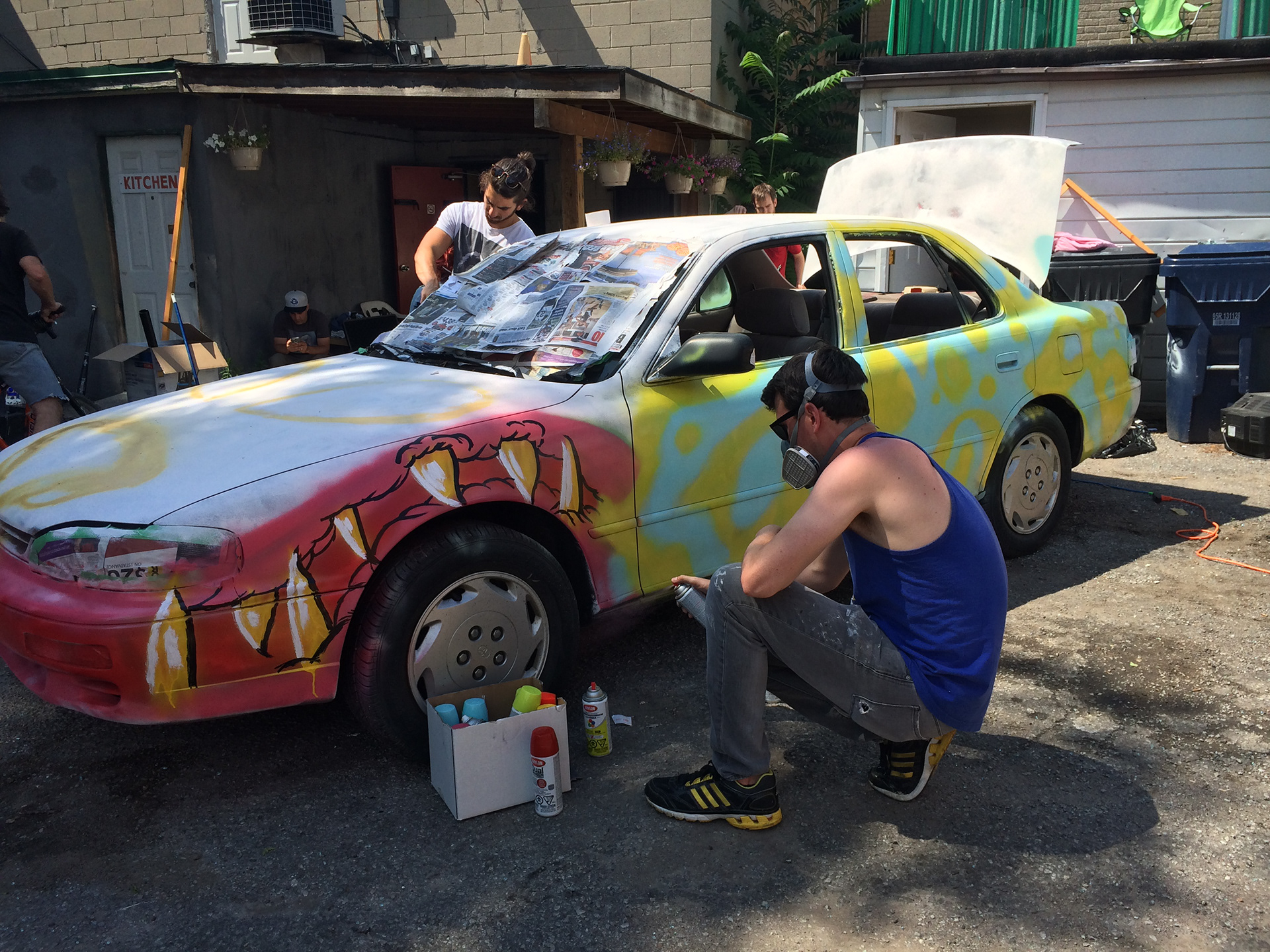 "It's hard to explain my feelings towards Mabu. Imagine the house you grew up in, or your old bedroom, or your first kiss. Imagine the day you made a blood pact with your best friend forever. Whatever that "thing" is for you, that's what Mabu is to me." -Stefan Babcock. I had a really great time painting the final death suit on Mabu before she was entered in to a demolition derby, where her and Stefan won second place. It was a great day of beer, spray paint, pizza and sunburns. And it was incredible to watch something I painted get smashed around at the derby the following weekend.